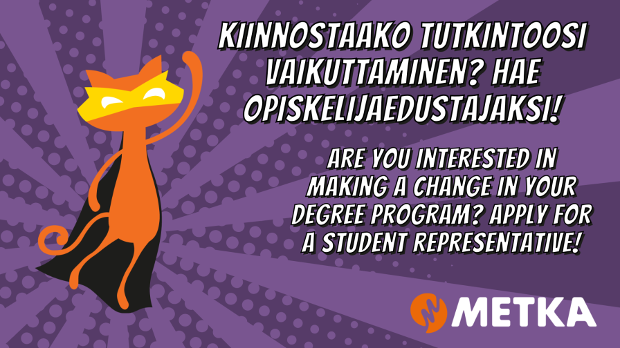 METKA appoints several dozen student representatives each year. The application period for next year’s student representative of the degree program advisory council is now open!