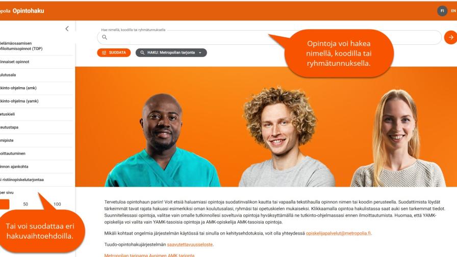 -Browser version at https://opintohaku.metropolia.fi/?lng=en