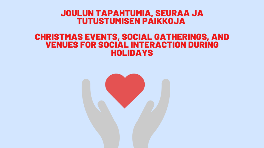 Joulu on monille aikaa perheiden ja ystävien kanssa, mutta kaikki eivät vietä joulua isossa joukossa. Jos tunnet olosi yksinäiseksi tai kaipaat seuraa ja joulun lämpöä, et ole yksin. Monet tahot pääkaupunkiseudulla ja kunnissa ympäri Suomen tarjoavat monenlaisia tapahtumia ja kokoontumisia, joissa voit kohdata muita ihmisiä, opiskelijoita, viettää aikaa rennossa ilmapiirissä ja nauttia joulun tunnelmasta.